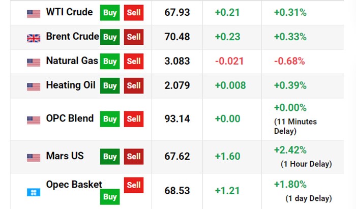 Cùng thời điểm, giá dầu thô biển Bắc (Brent) cũng tăng mạnh 0,38 USD lên 70,63 USD/thùng.