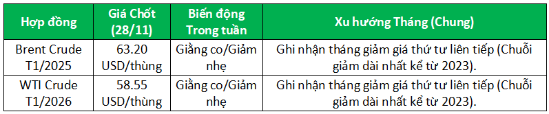 1. Diễn Biến Giá Dầu Thô (Tính đến 28/11)