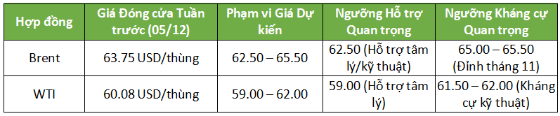 II. Dự báo Xu hướng và Phạm vi Giá dầu (8/12/2025 - 12/12/2025)