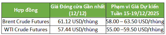 II. Dự báo Xu hướng và Phạm vi Giá dầu (15/12/2025 - 19/12/2025)