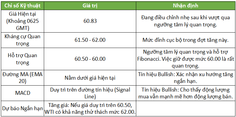 Cả dầu Brent và WTI đều nằm trong xu hướng tăng giá ngắn hạn (Uptrend) sau khi phục hồi mạnh mẽ từ vùng đáy gần đây.