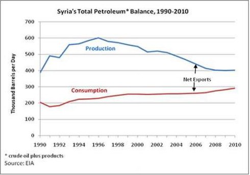 Theo dữ liệu do Cơ quan Thông tin Năng lượng Hoa Kỳ cung cấp, năm 2009, Syria đã sản xuất được trung bình 400.000 thùng dầu mỗi ngày, tương đương 730 triệu USD mỗi tháng dựa trên giá dầu mỏ hiện nay. Con số này chưa tính những chi phí sản xuất và vận chuyển.