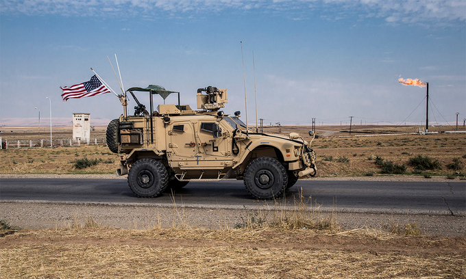 Thiết giáp Mỹ tuần tra gần một mỏ dầu ở đông bắc Syria tháng 10/2019. Ảnh: AP.