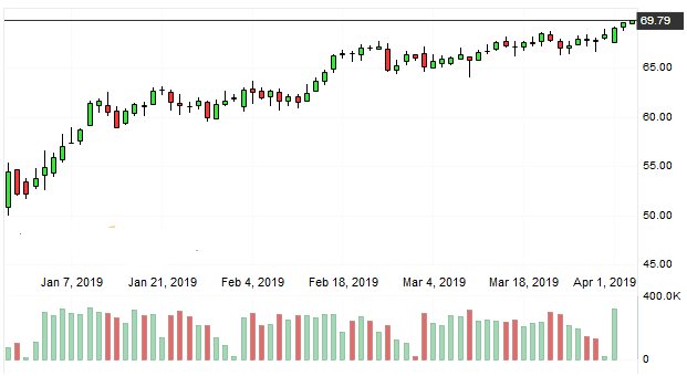 Giá dầu Brent chuẩn quốc tế giao tháng 6 cũng tăng 0,36 USD, tương đương 0,5%, lên 69,37 USD thùng trên sàn giao dịch hàng hóa quốc tế ICE ở Luân Đôn. Đây là mức đóng cửa cao nhất kể từ ngày 12/11/2018. Hiện tại giá dầu Brent đang hướng đến mục tiêu vượt mốc 70 USD/ thùng.