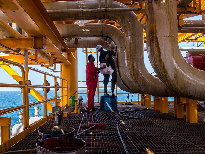 Một giàn khoan dầu ngoài khơi của Iran. Ảnh: BLOOMBERG