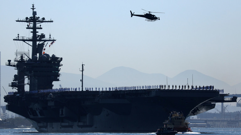 Tàu sân bay USS Theodore Roosevelt rời cảng lên đường đến Thái Bình Dương và Vịnh Ba Tư. Ảnh: Reuters