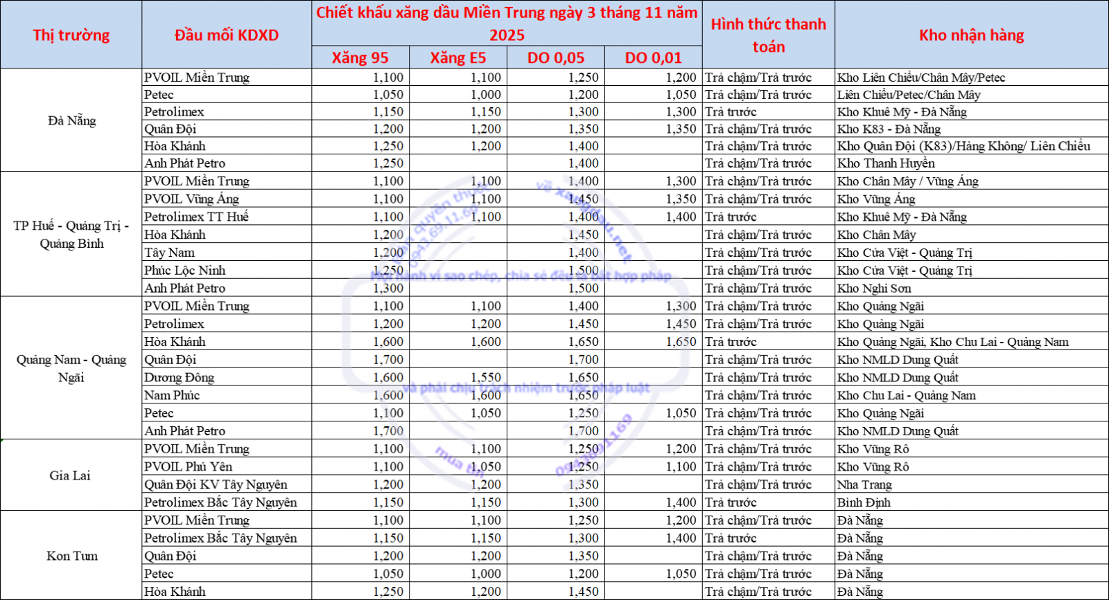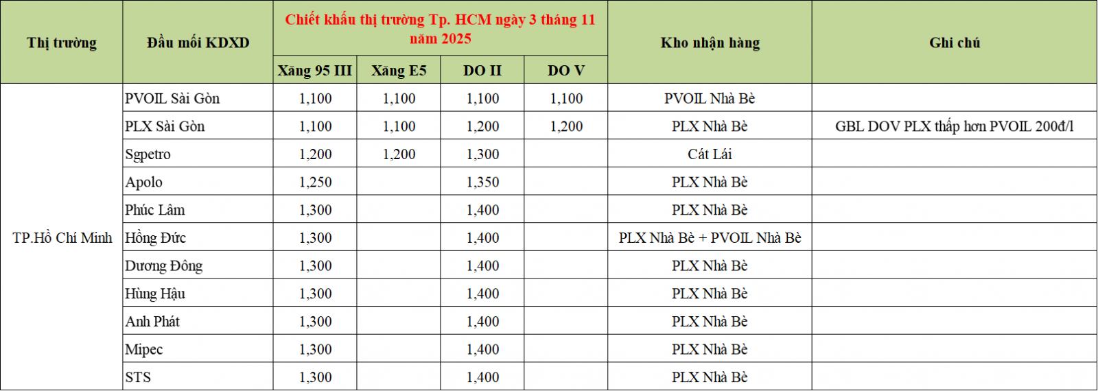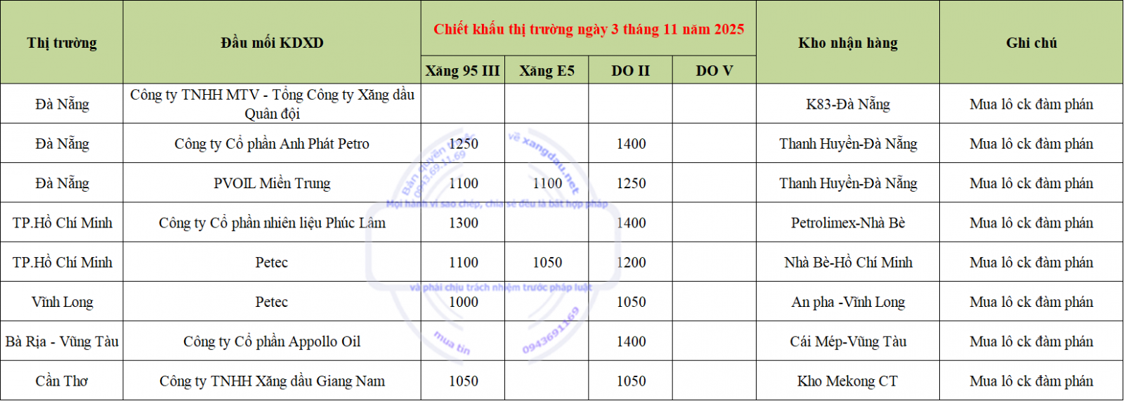 Chiết khấu xăng dầu VN ngày 04/11/2025