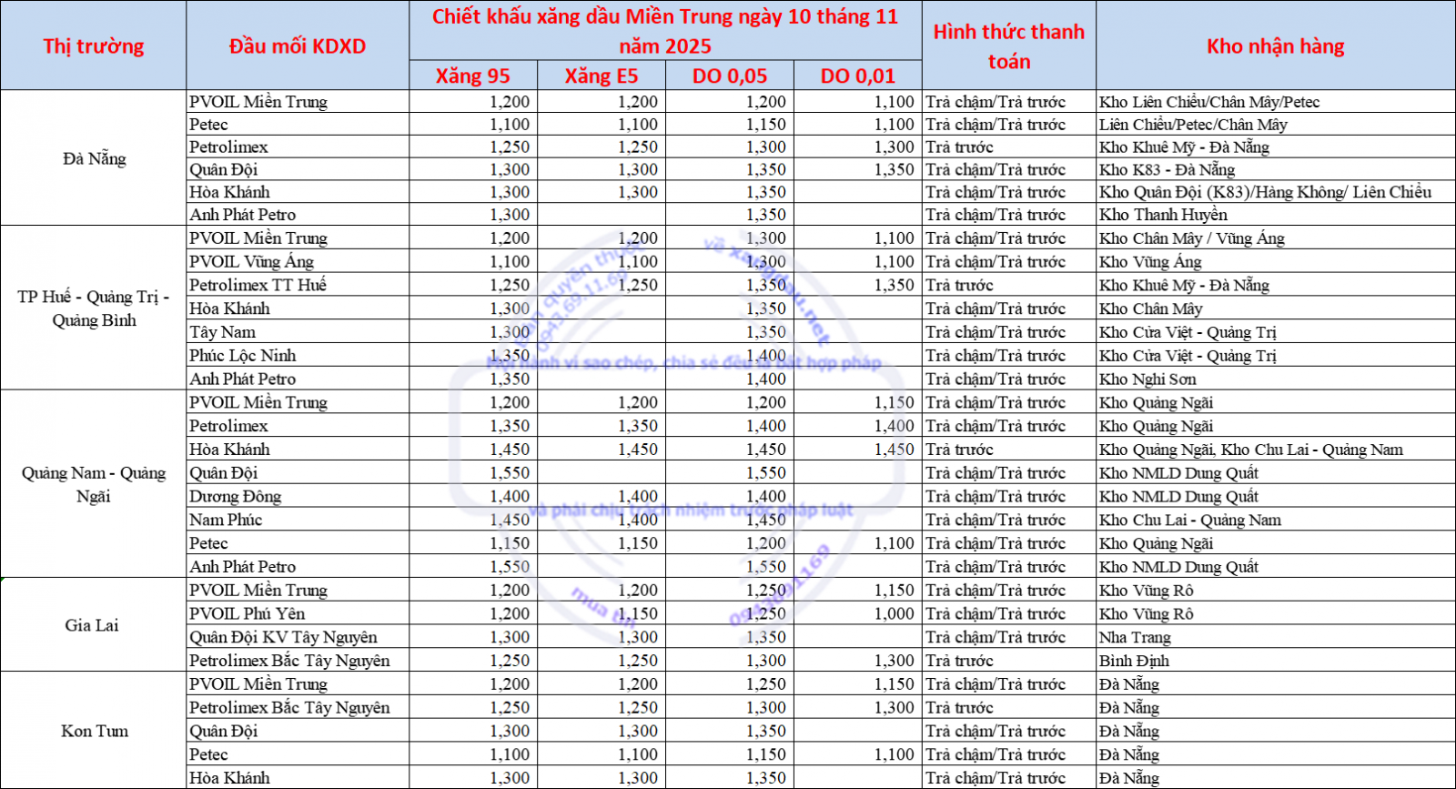 Chiết khấu xăng dầu VN ngày 12/11/2025