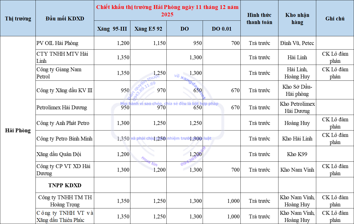 Chiết khấu xăng dầu VN ngày 12/12/2025