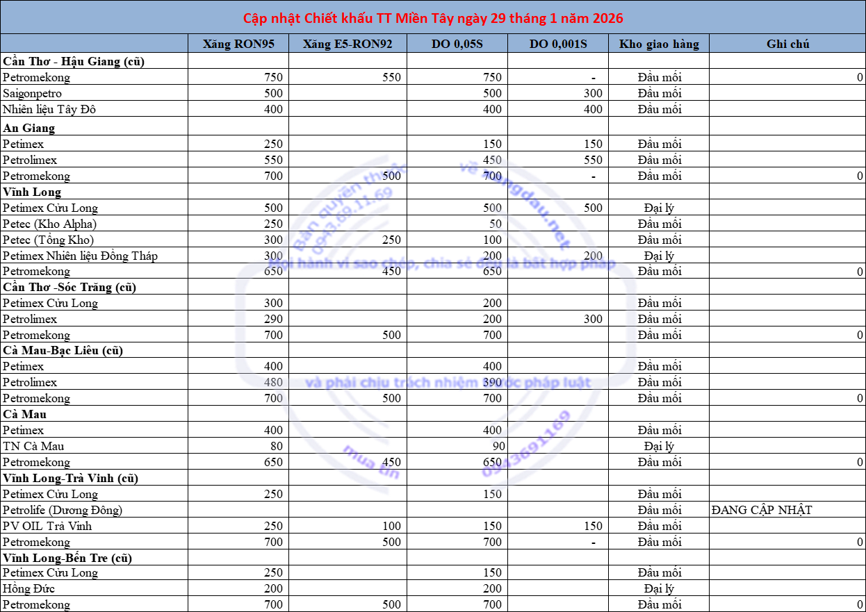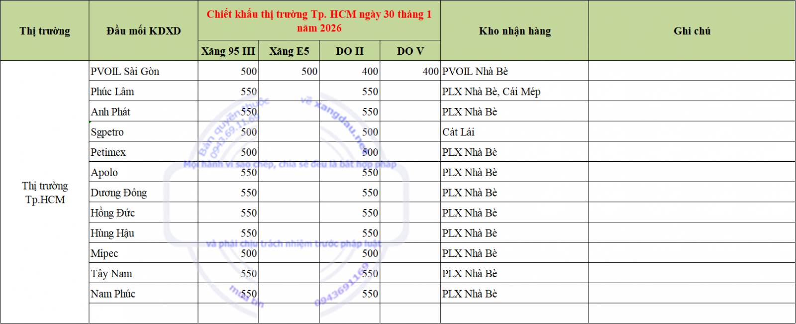Chiết khấu xăng dầu VN ngày 03/02/2026