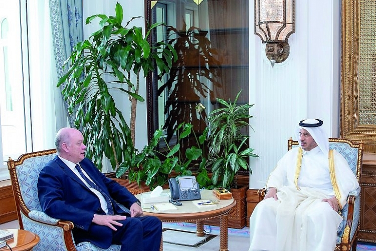 Bộ trưởng Ngoại thương Cuba Rodrigo Malmierca (trái) hội đàm với Thủ tướng Qatar Abdullah ben Nasser bin Khalifa Al Thani tại Doha ngày 17/2