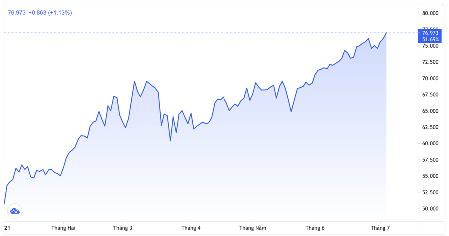 Diễn biến giá dầu Brent giao sau tại thị trường London từ đầu năm đến nay. Đơn vị: USD/thùng - Nguồn: Trading View.