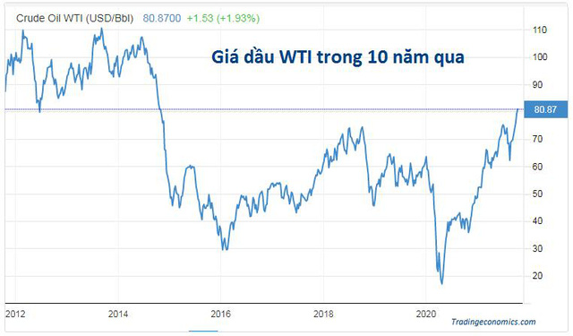 Đáng chú ý, dầu thô ngọt nhẹ của Mỹ (WTI) tăng 1,15%, tương đương 1,5%, vượt ngưỡng 80 USD/thùng, sau khi tăng 4,6% trong tuần qua. Ở mức 80,87 USD/thùng hiện nay, giá dầu WTI đang cao nhất kể từ cuối năm 2014.