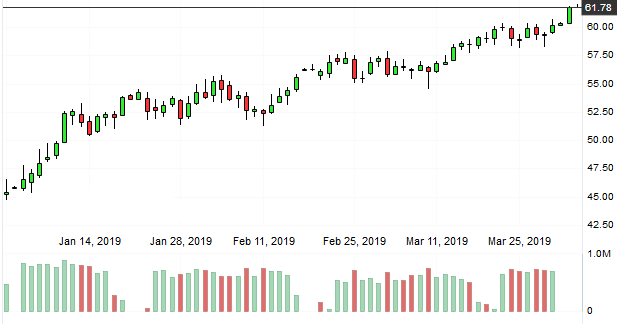Trong phiên hôm qua, giá dầu WTI chuẩn của Mỹ giao tháng 5 trên Sở giao dịch hàng hóa New York tăng 1,45 USD, tương đương 2,4%, lên 61,59 USD/ thùng, ghi nhận mức đóng cửa cao nhất kể từ ngày 7/11/2018 và là phiên đi lên thứ 3 liên tiếp. Giá dầu thô WTI đã tăng đến 32,4% trong vòng 3 tháng đầu năm nay, đánh dấu mức tăng hàng quý mạnh nhất kể từ quý 2/2009.