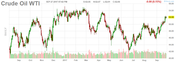 Thị trường New York, giá dầu thô ngọt nhẹ WTI giao tháng Mười một tăng 26 cent tương đương 0,5% lên 52,14USD/thùng, như vậy giá dầu đã lấy lại được phần lớn mức hạ 0,7% trong phiên ngày thứ Ba.