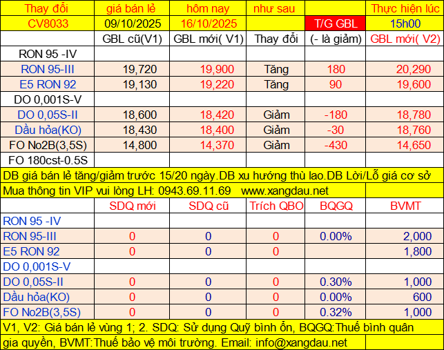 Thời điểm từ 15h00 ngày 09/10/2025 có hiệu lực đến kỳ điều chỉnh 15h00 ngày 16/10/2025. |