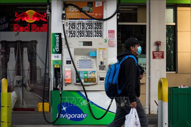 Một trạm xăng ở New York, Mỹ ngày 21/4/2020. Ảnh: THX/TTXVN