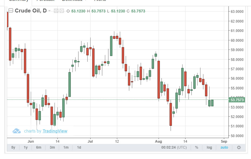 Ngược lại với giá vàng, thông tin khả quan của cuộc chiến thương mại Mỹ - Trung đã sưởi ấm giá dầu, đưa mặt hàng này đi lên. Tổng thống Mỹ Donald Trump ngày 26/8 cho biết Trung Quốc đã đề nghị nối lại đàm phán thương mại. Tuyên bố này được đưa ra chỉ vài giờ sau khi Phó thủ tướng Lưu Hạc, nhà đàm phán thương mại cấp cao nhất của Trung Quốc, kêu gọi bình tĩnh để giải quyết thương chiến.