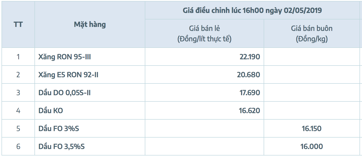 - Xăng E5RON92: không cao hơn 20.688 đồng/lít;