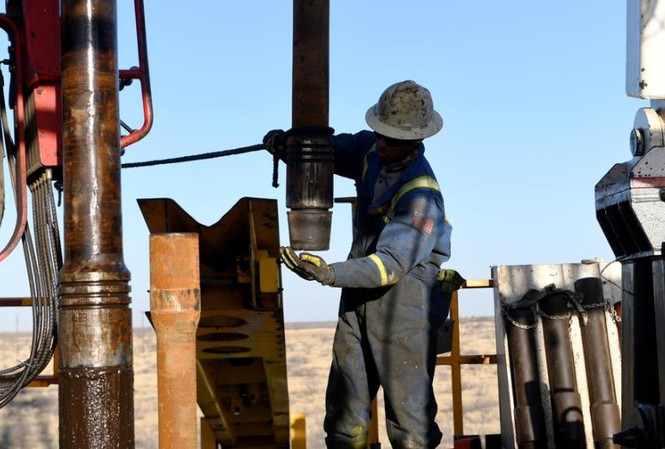 Một công nhân đang làm việc tại dàn khoan thuộc sở hữu của công ty Elevation Resources gần Midland, Texas, Mỹ. Ảnh: REUTERS