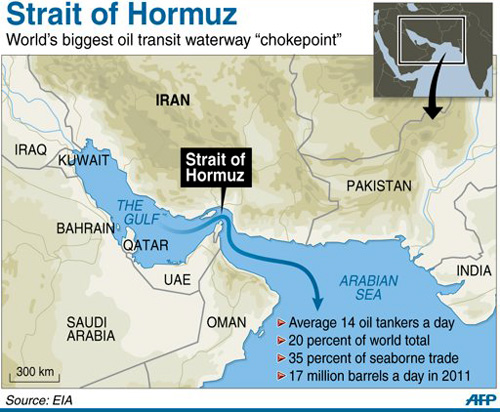 Eo biển Hormuz là tuyến đưá»ng váºn chuyển dầu quan trá»ng cá»§a thế giá»›i (Ảnh: AFP)