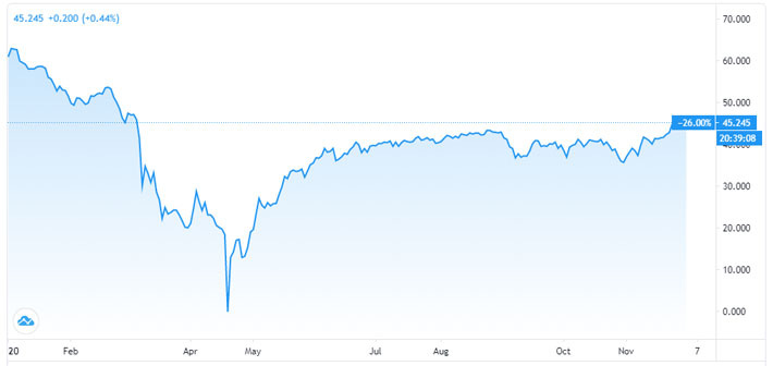 Tuy nhiên, giá dầu đã tăng mạnh trong tháng 11 vừa qua, nhờ hy vọng sẽ sớm có vaccine ngừa Covid-19 để tiêm chủng, theo đó cải thiện triển vọng tăng trưởng kinh tế và nhu cầu tiêu thụ năng lượng của thế giới.