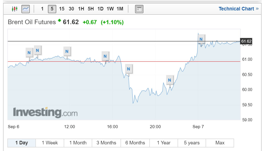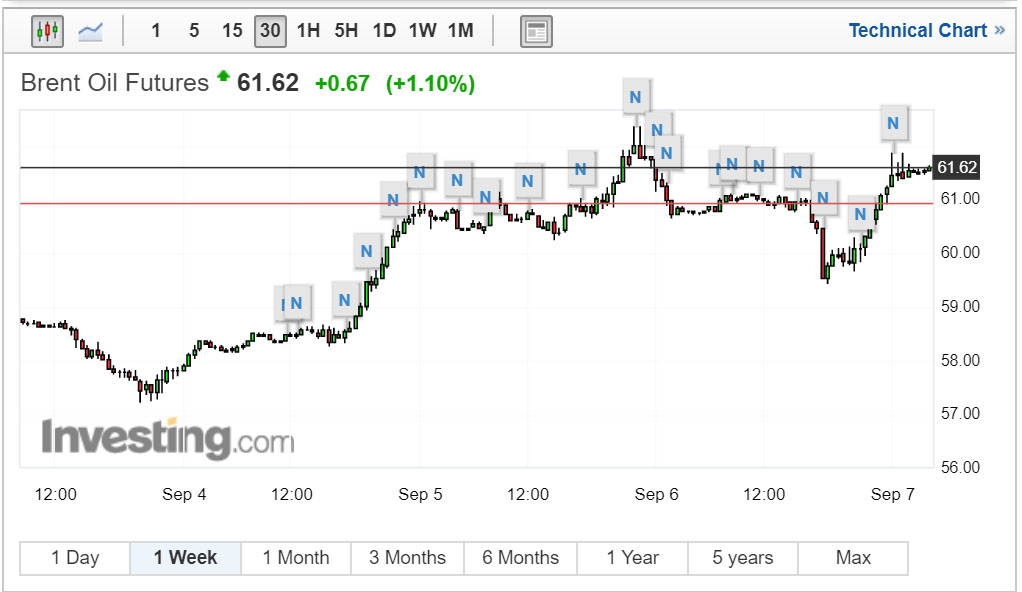 Những ngày đầu tiên của tháng 9, giá dầu giảm mất mốc 60USD/thùng. Nhưng từ ngày 4/9 đến nay, giá dầu liên tục tăng ăn theo những thông tin tích cực từ nền kinh tế Mỹ và thế giới.