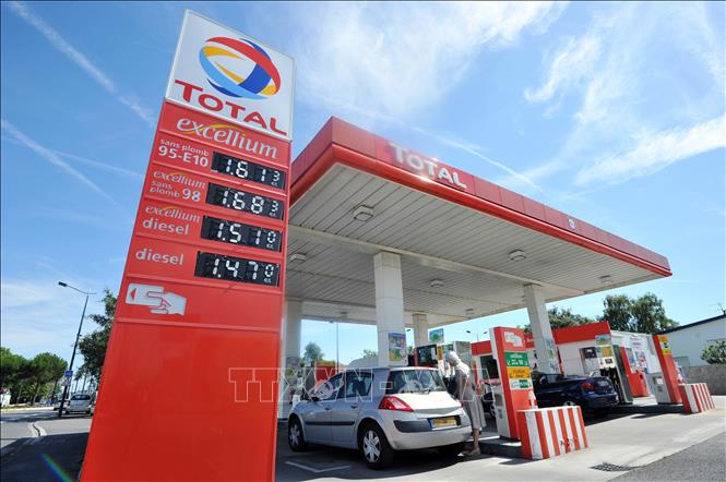 Một cửa hàng bán xăng ở Saint-Herblain, thành phố miền Tây Pháp. Ảnh: AFP/TTXVN