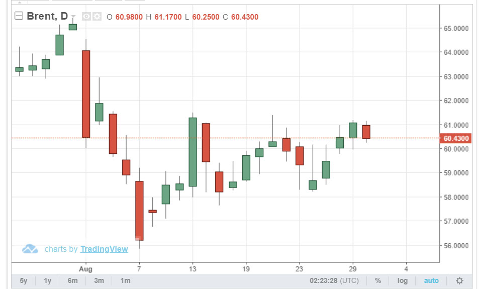 Trong tháng 8, giá dầu Brent giảm 7,3% trong khi WTI giảm 6%. Giá dầu thế giới giảm mạnh trước tin cơn bão Dorian ngày càng mạnh hơn và sẽ tiến sát vào bờ biển Florida (Mỹ) và được dự báo sẽ mạnh lên, trở thành một cơn bão cấp 4 nguy hiểm.