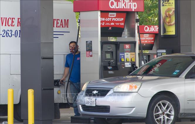 Bơm xăng tại trạm xăng ở Plano, Texas, Mỹ. Ảnh: THX/TTXVN