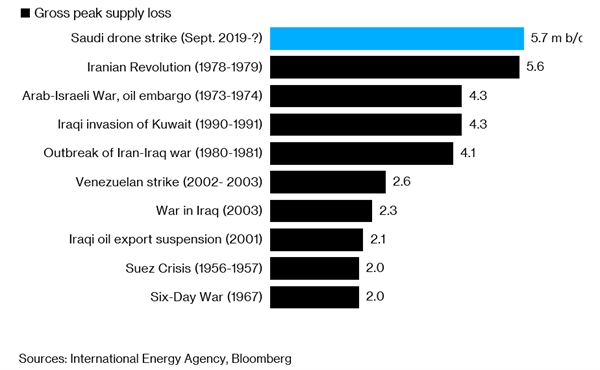 Đối với các thị trường năng lượng thế giới, đây là vụ gián đoạn lớn chưa từng có, quy mô tác động của nó tồi tệ hơn cả việc thiếu hụt nguồn cung tại Kuwait và Iraq vào tháng 8/1990 khi mà Iraq xâm lược nước láng giềng. Ngoài ra, sức ảnh hưởng của sự kiện này cũng lớn hơn so với việc Iran ngừng cung dầu ra thị trường thế giới trong thời kỳ cách mạng Hồi giáo năm 1979, theo số liệu của Bộ Năng lượng Mỹ.