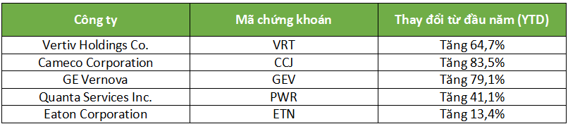 Trước đây, chúng tôi đã nêu bật một số công ty có vị thế hưởng lợi từ việc xây dựng công suất điện do AI thúc đẩy, bao gồm: