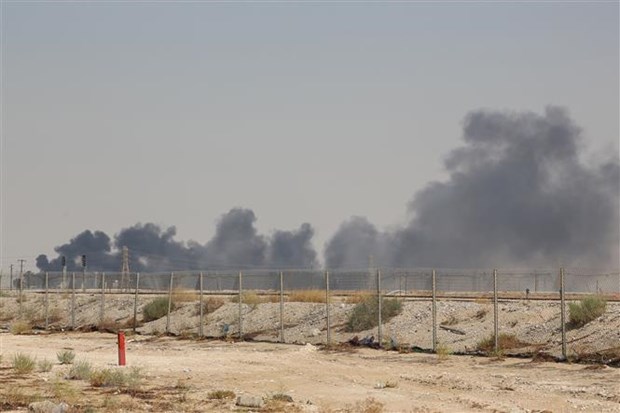 Khói bốc lên từ nhà máy lọc dầu của Aramco ở Abqaiq, Saudi Arabia, sau vụ tấn công ngày 14/9/2019. (Ảnh: AFP/ TTXVN)