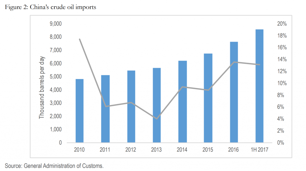 Vào năm 2015, chính phủ Trung Quốc đã mở cửa cho các nhà máy lọc dầu nhỏ, tư nhân để nhập dầu thô và cạnh tranh với các công ty dầu mỏ quốc gia khổng lồ (NOCs). Sự thay đổi chính sách này đã có ý nghĩa toàn cầu, ảnh hưởng đến dòng chảy thương mại dầu thô và sản phẩm tinh chế. Một báo cáo mới từ Trung tâm Chính sách Năng lượng Toàn cầu của Đại học Columbia cho rằng sự trỗi dậy của nhà máy lọc dầu tư nhân Trung Quốc là Yếu tố then chốt nhất đằng sau sự gia tăng nhập khẩu dầu thô vô cùng mạnh mẽ của Trung Quốc trong hai năm qua, cũng như là một lý do quan trọng tại sao lợi nhuận lọc dầu châu Á đã xấu đi.