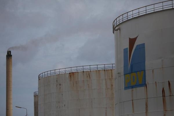 Logo của tập đoàn dầu khí quốc gia Venezuela PDVSA trên một bồn chứa dầu ở nhà máy lọc dầu Isla trên đảo Curacao. Ảnh: Reuters