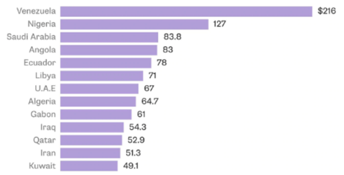 Arab Saudi, một nước gần như phụ thuộc hoàn toàn toàn vào dầu mỏ để tài trợ cho các chi tiêu xa hoa của chính phủ, nằm giữ khoảng 500 tỉ USD dự trữ ngoại hối để bù lỗ. OPEC có lợi thế cạnh tranh rất rõ ràng, khi các thành viên Trung Đông của họ có thể sản xuất lượng dầu thô tương đương với ngành đá phiến của Mỹ với chi phí chỉ bằng 1/3.