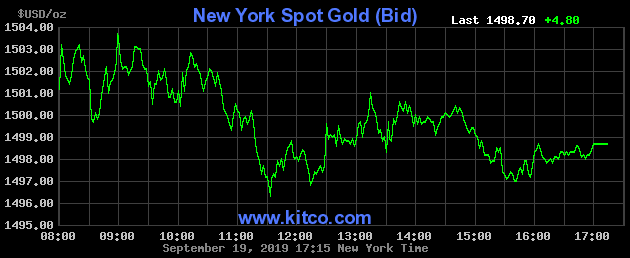 Giá vàng giao ngay ngày 19/9 tại sàn New York.
