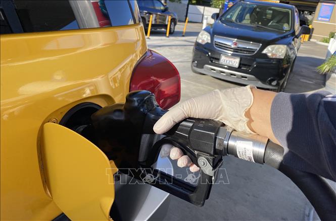 Đổ xăng cho phương tiện tại một trạm xăng ở Los Angeles, bang California, Mỹ ngày 18/3/2020. Ảnh: AFP/TTXVN