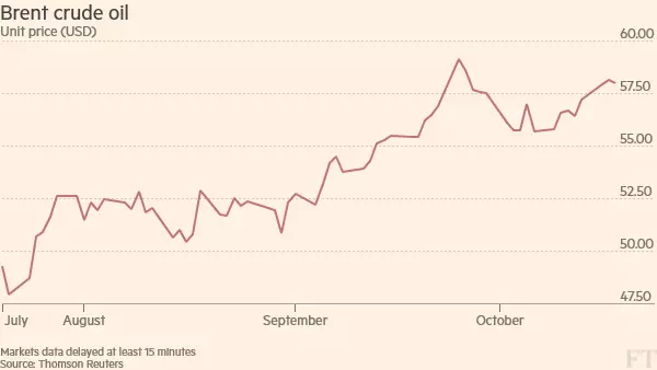 Lần đầu tiên thị trường dầu mỏ đã tăng lên trên 65 USD/thùng kể từ năm 2015, được thúc đẩy bởi việc đóng cửa đường ống dẫn dầu lớn nhất của Anh, đã cắt đứt nguồn cung dầu Biển Bắc vào thời điểm cắt giảm sản lượng của Opec với Nga đã thúc đẩy tăng giá dầu thô trong năm nay.