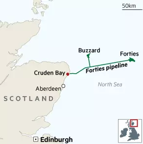 Vì đường ống dẫn này vận chuyển 40% nguồn cung dầu và khí đốt từ Biển Bắc của Anh, việc ngừng hoạt động nhánh vận chuyển 400.000 thùng/ngày đã buộc các nhà khai thác tại 85 mỏ sản xuất phải giảm sản xuất.