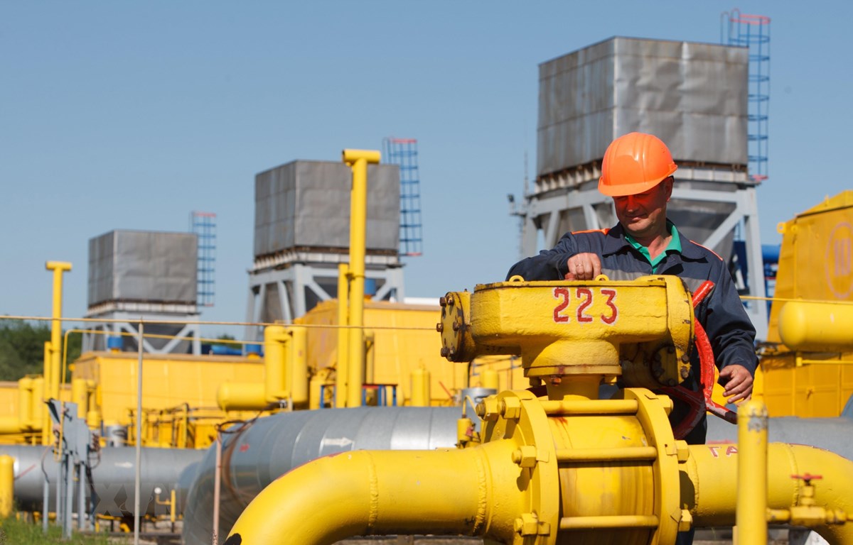Ảnh tư liệu: Công nhân làm việc tại cơ sở dự trữ khí đốt Bilche-Volytsko-Uherske ở gần làng Bilche, khu vực Lviv, Ukraine. (Nguồn: AFP/ TTXVN)