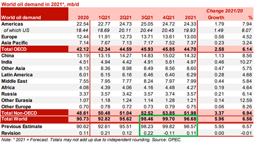 Nhu cầu dầu thế giới năm 2021. Nguồn: OPEC.