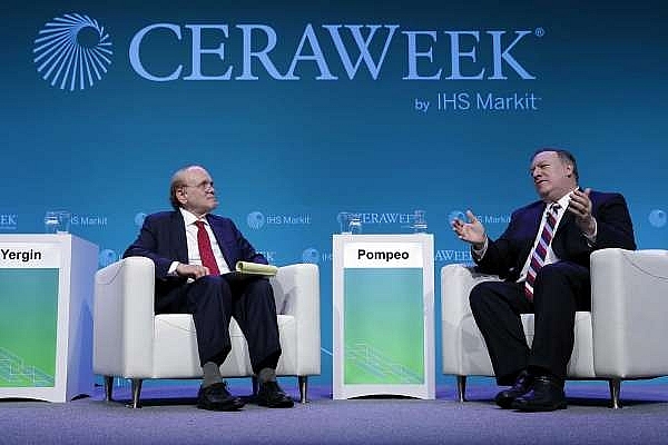 Ngoại trưởng Mỹ Mike Pompeo (phải) tại Hội nghị CERAWEEK ngày 13/3