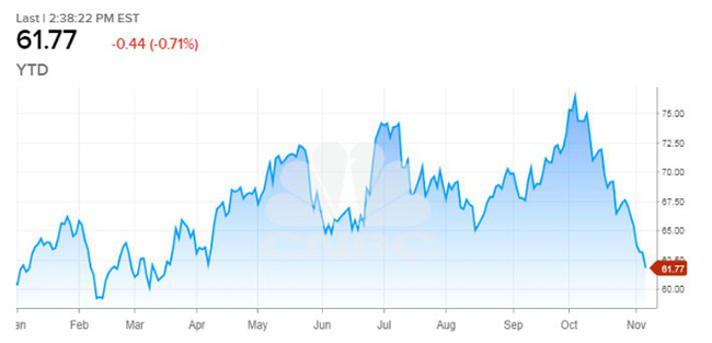Diễn biến giá dầu WTI giao sau tại thị trường Mỹ từ đầu năm đến nay - Nguồn: CNBC.