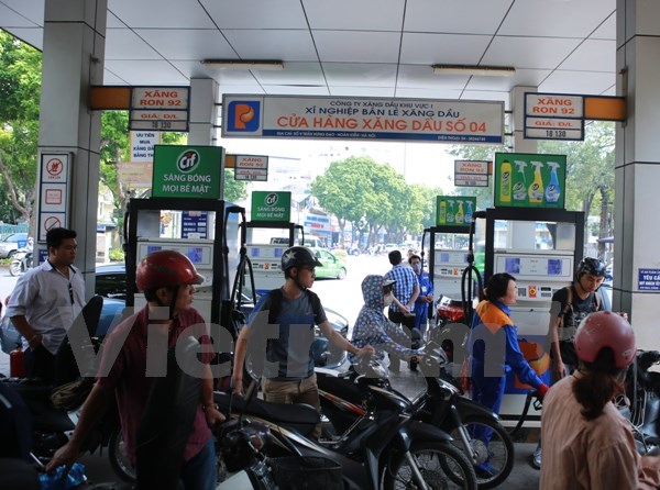 Nhân viên Petrolimex đang bán xăng cho khách hàng. (Ảnh: Đức Duy/Vietnam+)