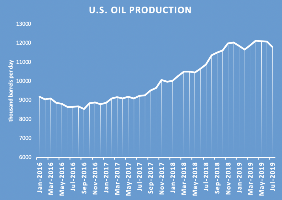 Dữ liệu EIA mới nhất cho thấy sản lượng dầu giảm mạnh trong tháng 7, giảm 276.000 thùng mỗi ngày. Sự sụt giảm này có thể là do những gián đoạn liên quan đến một cơn bão đã buộc các công ty dầu mỏ phải tạm thời hoạt động ở Vịnh Mexico. Sản lượng ngoài khơi Vịnh Mexico đã giảm mạnh 332.000 thùng/ngày trong tháng Bảy.