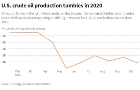 Số lượng giàn khoan ở Mỹ đang tăng dần lên. Số lượng giàn khoan chủ lực dự kiến sẽ tăng lên 602 vào cuối năm, tăng vọt từ mức thấp nhất trong 13 năm là 222 giàn vào mùa hè năm ngoái. Trong khi mối quan hệ trực tiếp giữa các giàn khoan và sản lượng rất phức tạp, thì các nhà phân tích của Oxford đã kết luận rằng sản lượng đá phiến tăng có thể ảnh hưởng đến các tính toán thận trọng của OPEC +.