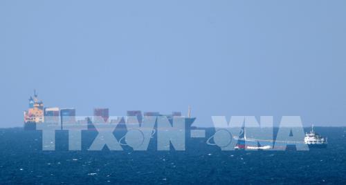 Tàu chở hàng đi qua Eo biển Hormuz ngày 15/1/2012. Ảnh: AFP/ TTXVN