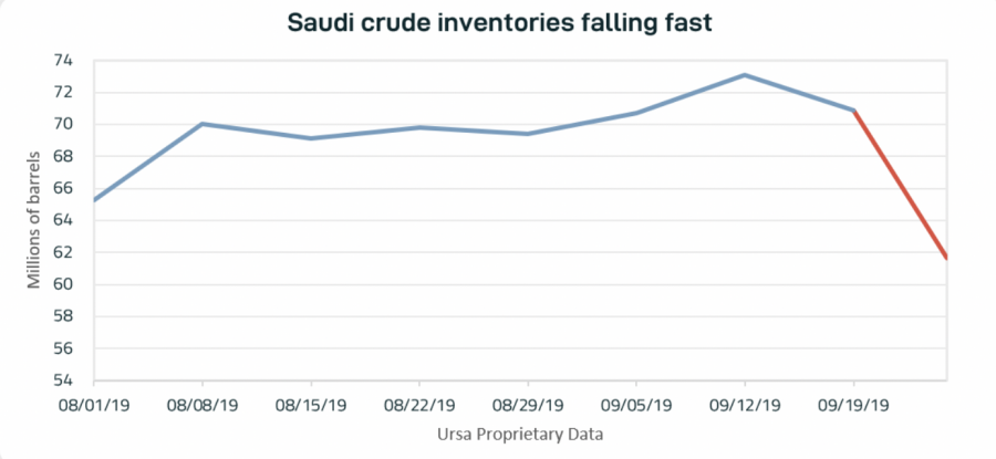 Được biết Aramco đã tiếp tục cung cấp cho khách hàng của mình, một phần bằng cách rút dầu từ các kho dự trữ. Tồn kho giảm đã được báo cáo bởi Ursa, một công ty tình báo không gian địa lý. “Gần đây tôi đã nói chuyện với nhà phân tích năng lượng toàn cầu Ursa”, Geoff Craig, người đã giải thích về khả năng và phát hiện của công ty.