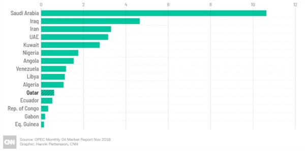Qatar là quốc gia Trung Đông đầu tiên rút khỏi OPEC, được thành lập vào năm 1960. Các quốc gia khác đã đến và đi - Indonesia rời đi vào năm 2009 trước khi gia nhập không tới một năm vào năm 2016. Gabon tái gia nhập vào năm 2016 sau 20 năm vắng mặt.
